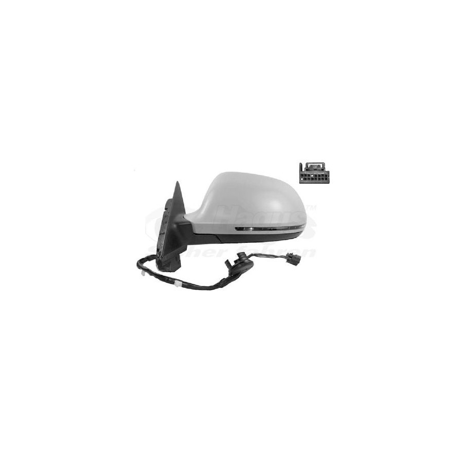 Fitting Position Left (passenger side) Surface Primed Outer/Inner Mirror With memory Spherical Heatable Electronically foldable For electric mirror adjustment Complete Mirror Polarity 14 Paired article numbers 0327818 Quality Hagus Light Function With indicator Warranty 3 years -