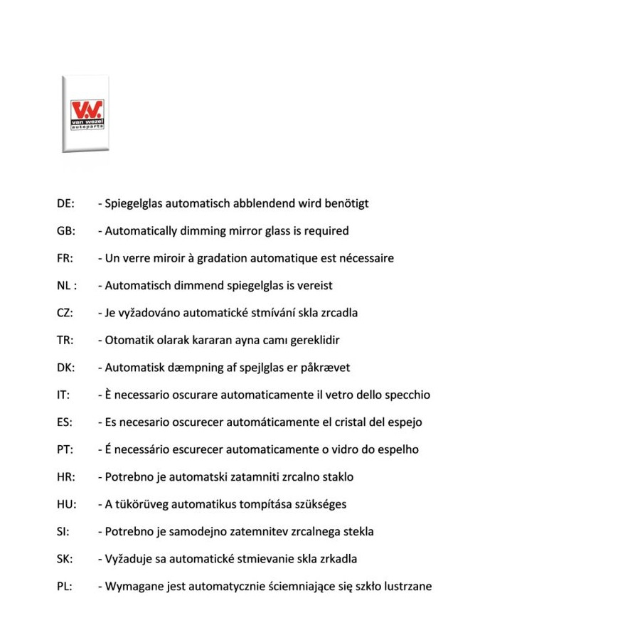 | Outer/Inner Mirror | Complete Mirror | Spherical | Electronically foldable | Heatable | With memory | For electric mirror adjustment |