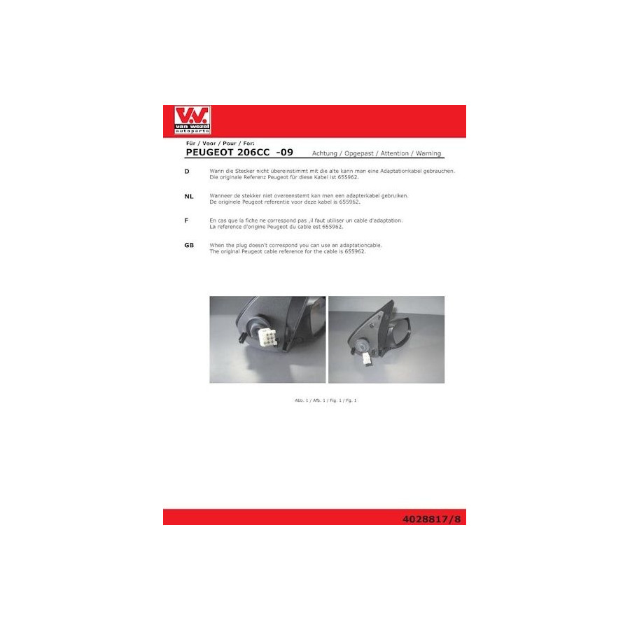 Mirror fitted perfectly except that the connection plug did not fit. Had to cut old and new plug and solder again to make everything work