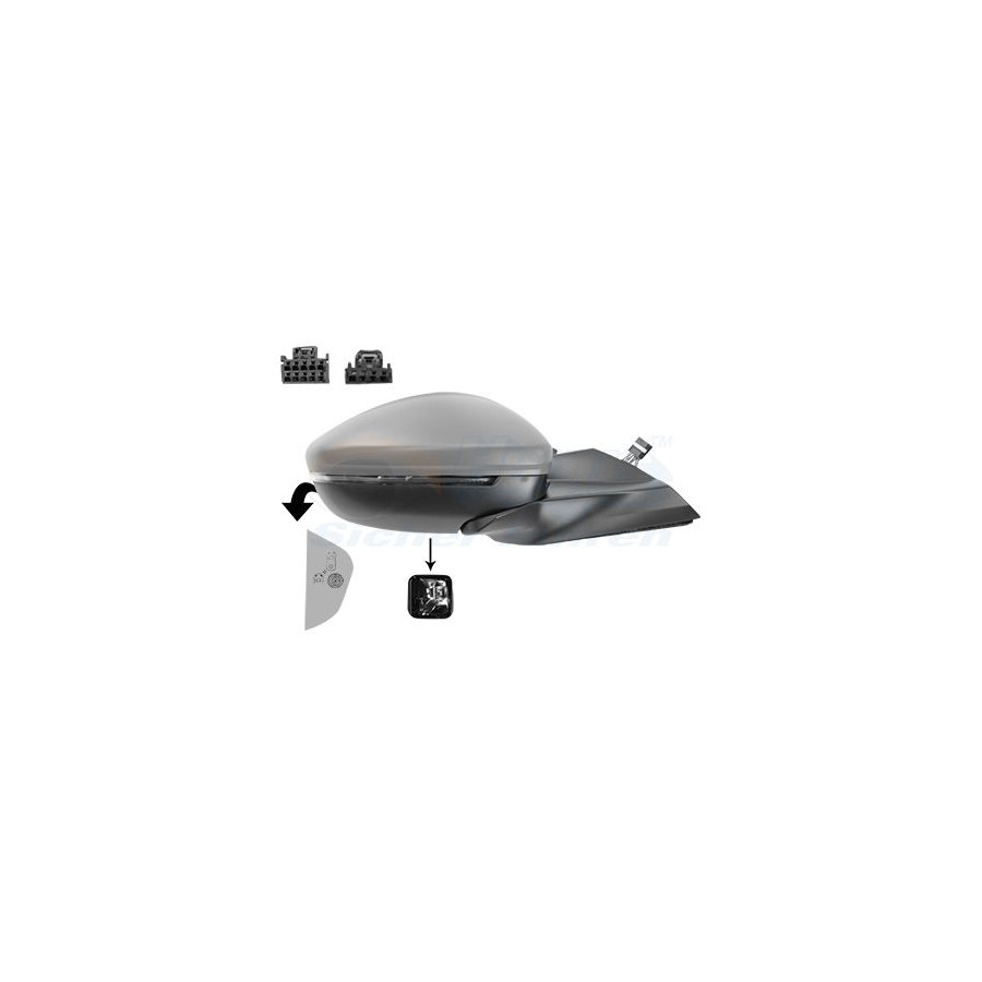 Fitting Position Right (driver's side) Surface Primed Outer/Inner Mirror Complete Mirror Spherical For electric mirror adjustment Electronically foldable Heatable With thermo sensor Performance For vehicles with lane assist Paired article numbers 4092827 Number of connectors 2 Quality Hagus Light Function With indicator Light Distribution Surface Lighting Number of used contacts 14 Warranty 2 years Number of contacts 14 Similar products of other manufacturers