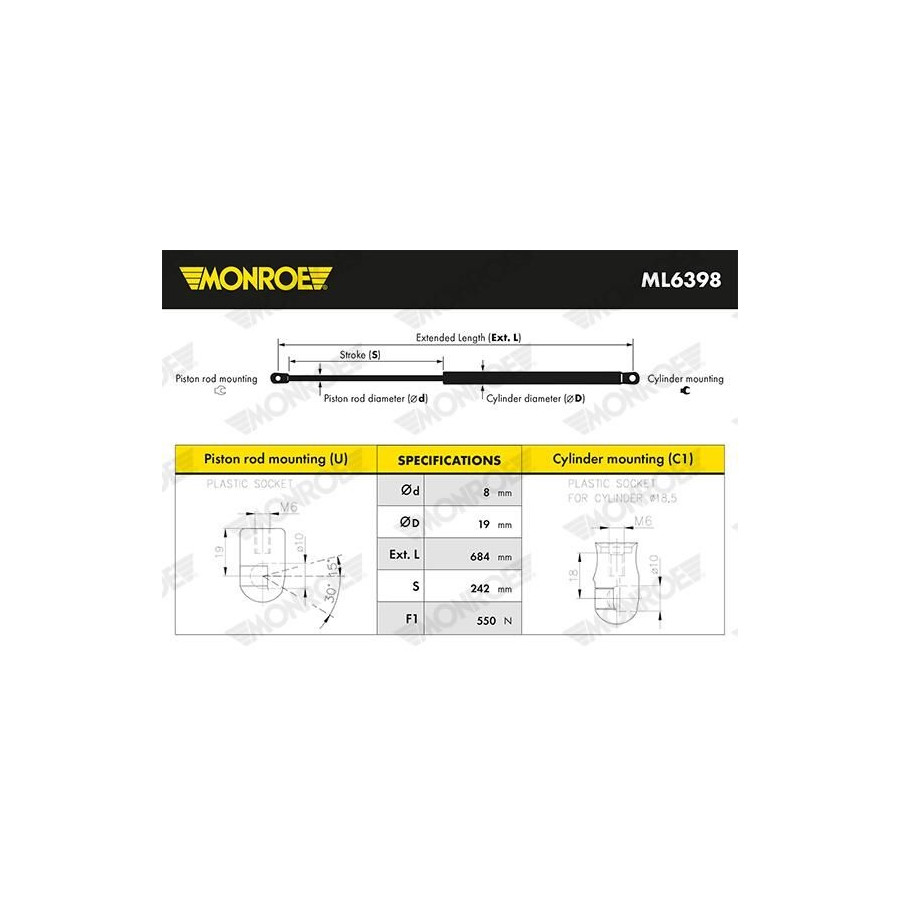Gas Spring, boot-/cargo area ML6398 Monroe