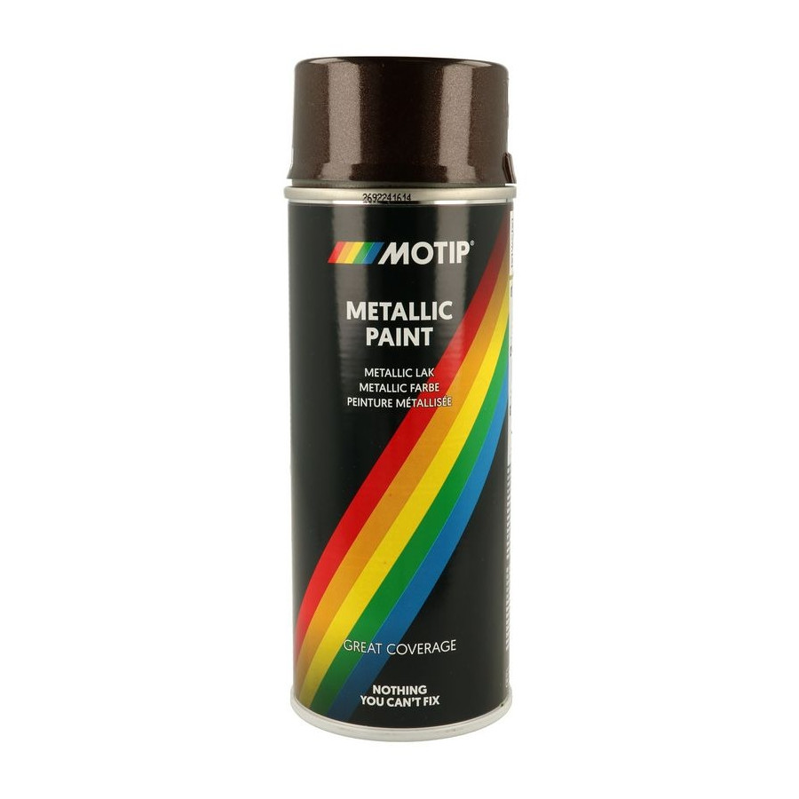Colour Brown Packing Type Spraycan Optical Impression Glossy Warranty 2 years Contents [ml] 400 Height [mm] 193 Width [mm] 69 Paint Metallic paint Operating temperature from [°C] 10 25 Colour Effect Metallic effect Depth (mm) 69 Weight [kg] 0,403 Follow the manufacturer's guidelines -