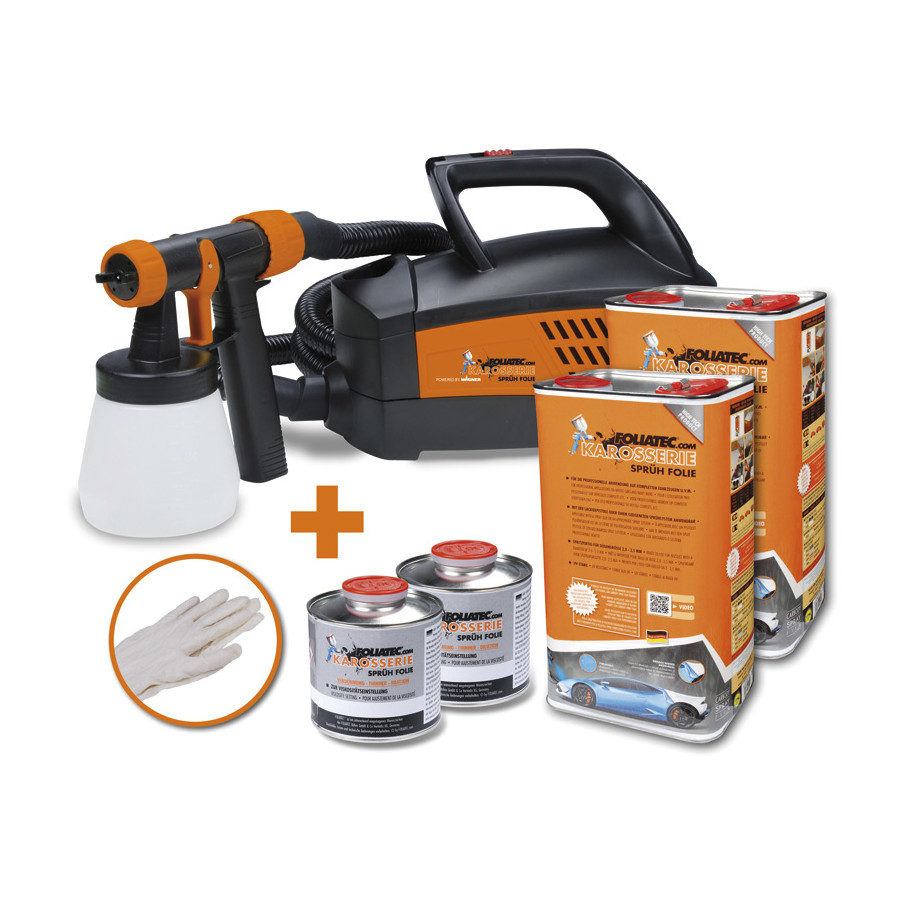 Colour White Warranty 2 years application Spray film Content Spray foil 2x 5 liters Thinner 2x 500ml Including Spray Gun 12meter slang Compressor -