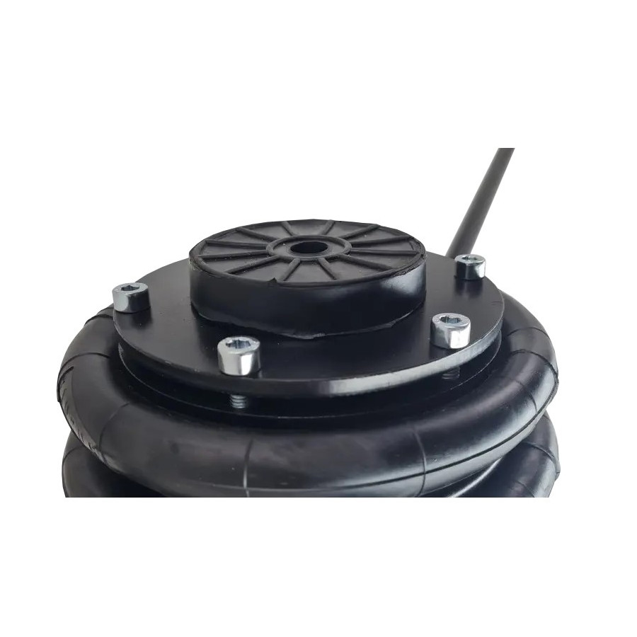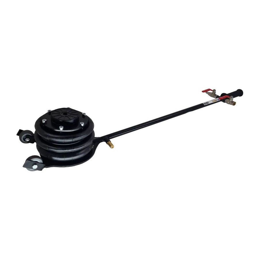 This pneumatic air bellows jack has a lifting capacity of 2000 kilograms. This high-stability jack has two wheels and is therefore easy to move and store after use. Operation is carried out by two levers.