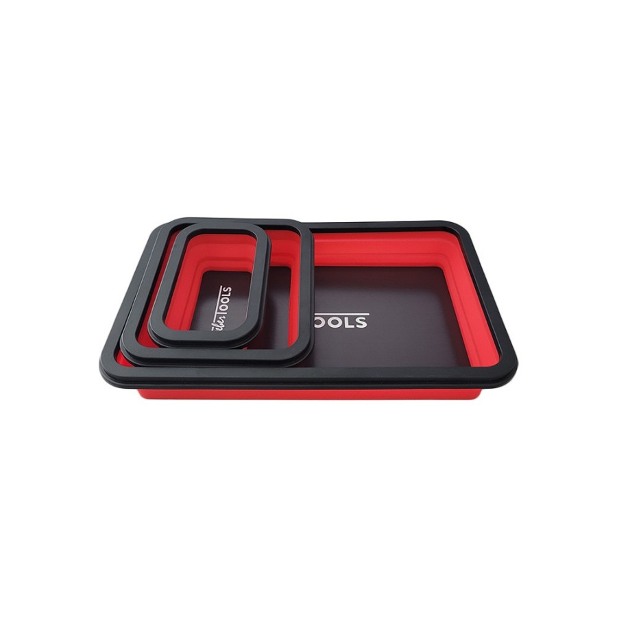 Discover our 3-piece magnetic tray set, perfect for organizing metal parts such as nuts, bolts, and screws. Thanks to the powerful magnets, the parts stay securely in place and the trays can be easily attached to any ferromagnetic surface. Made of oil-resistant silicone gel and ABS, these trays are durable and practical. What’s more, they are foldable, which provides extra convenient storage space when not in use. Ideal for both professional workshops and hobbyists!