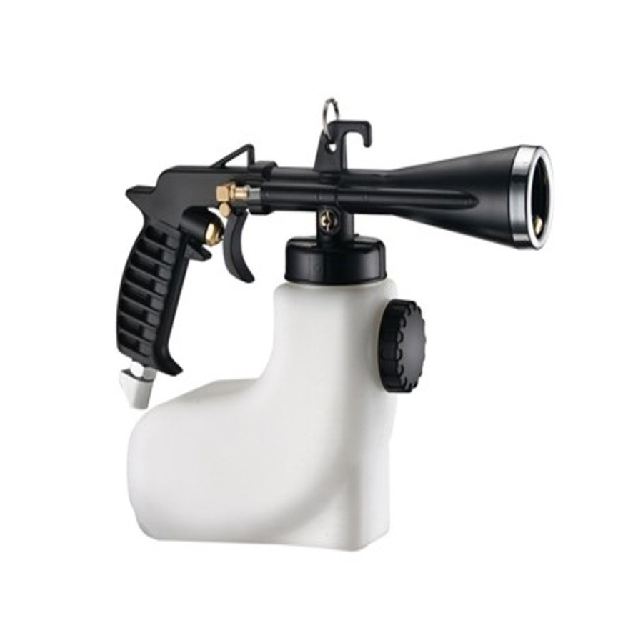 The gun is equipped with a regulation knob to be able to dose the liquid to be dispensed.We recommend a good all-purpose cleaner or specific cleaning agents such as nicotine cleaner, carpet cleaner or grease remover. Cleaning fluid is not included!