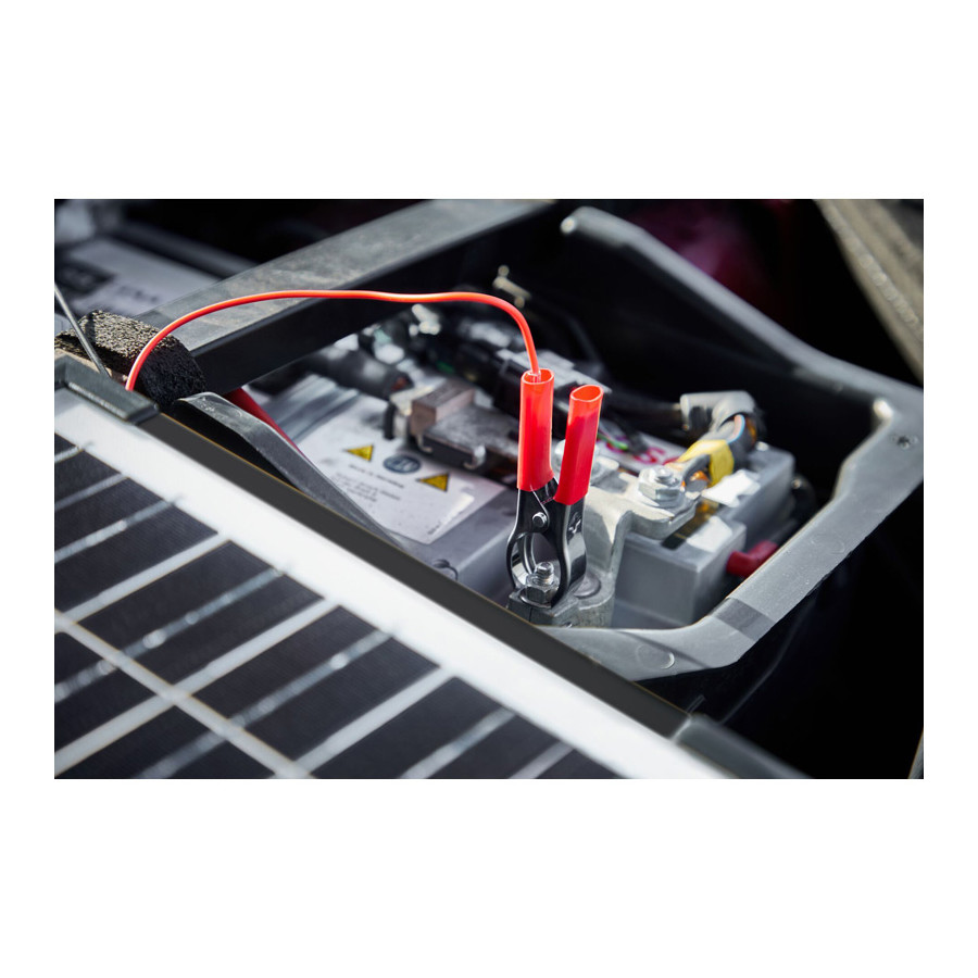 Modern vehicles have a small but constant battery discharge. They are packed with electrical systems that operate continuously, even when the ignition is off. Alarms, immobilizers, and lock monitoring are examples of systems running in the background and can cause the battery to drain even when the vehicle is not being used. The OSP1000 is a solar-powered battery maintainer for 12V vehicles – the low-carbon and more environmentally friendly way to maintain your vehicle battery when not in use. Ideal for seasonal vehicles such as caravans, classic cars, and motorcycles. Supplied with a DC power plug and battery clamps, it works in cloudy conditions and is waterproof to IP65. Reverse polarity protection prevents damage if the clamps are connected to the wrong battery terminals!
