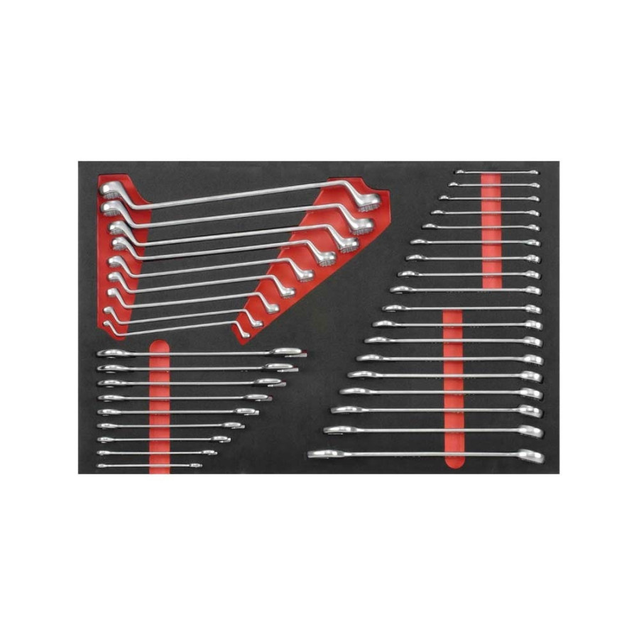 The EVA Foam is soft and very flexible. Each tool is clearly arranged in its own place in the very precisely cut inlay shape. Foam inlay trays made of oil and petrol resistant foam.