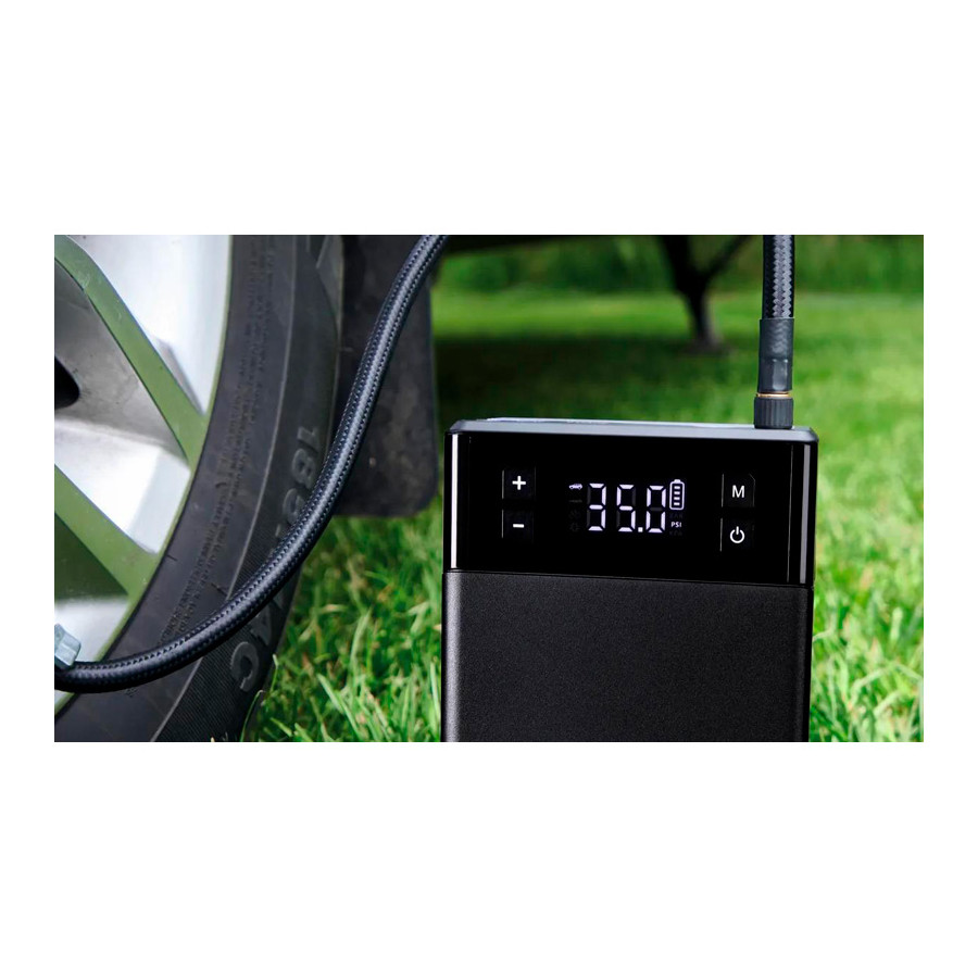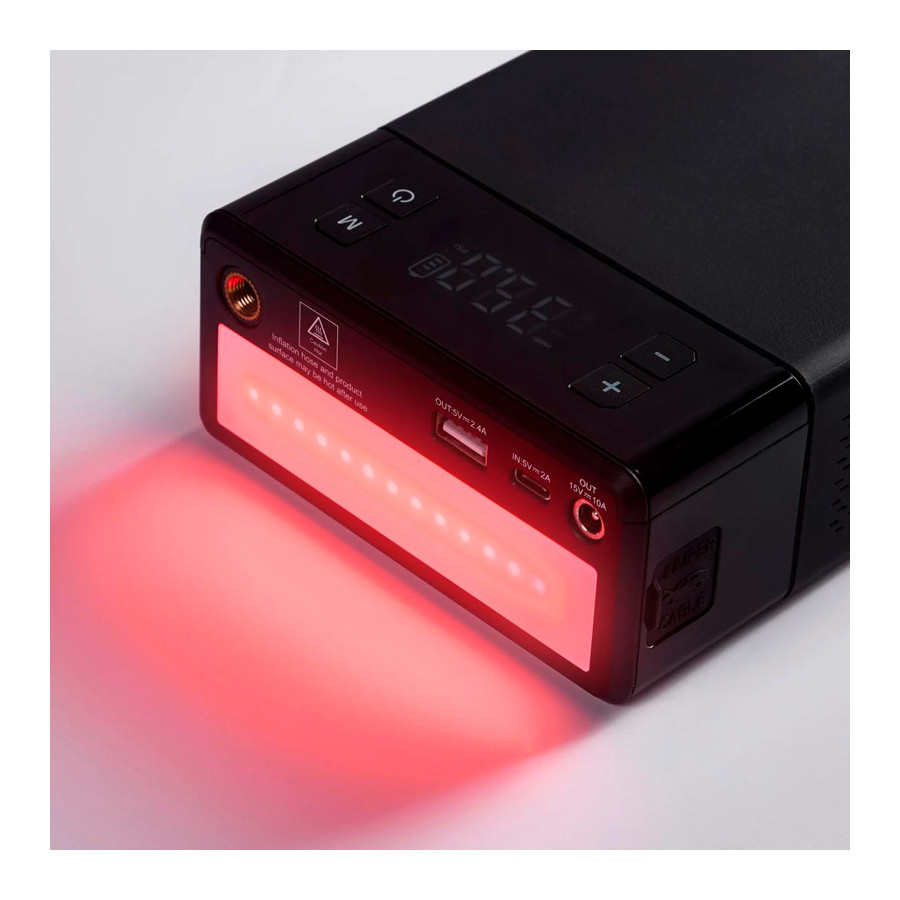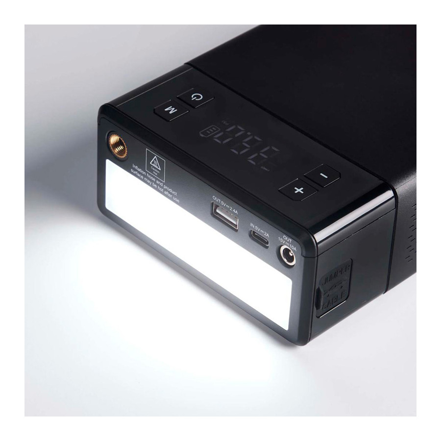 Need to keep your tires in check? The built-in tire inflator features a digital pressure gauge and an auto-stop function for easy and accurate inflation. The 12V power outlet allows you to power a variety of devices via the cigarette lighter, while the USB power bank lets you charge your phone or other gadgets wherever you are.