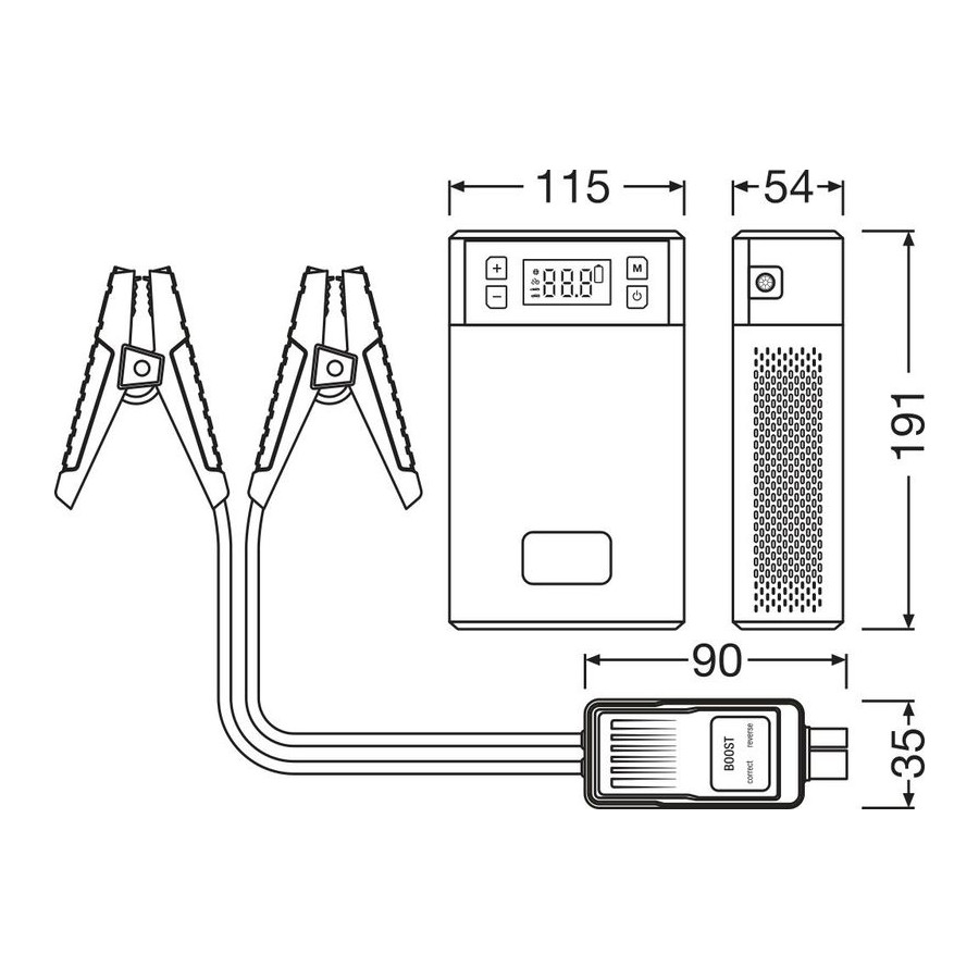 This compact, multifunctional device combines five handy tools and provides essential support in emergencies. Its powerful jump-start function can revive 12V vehicles, including petrol engines up to 5 liters and diesel engines up to 3 liters. Even if your battery is completely flat, the boost function provides the extra power you need to get back on the road.