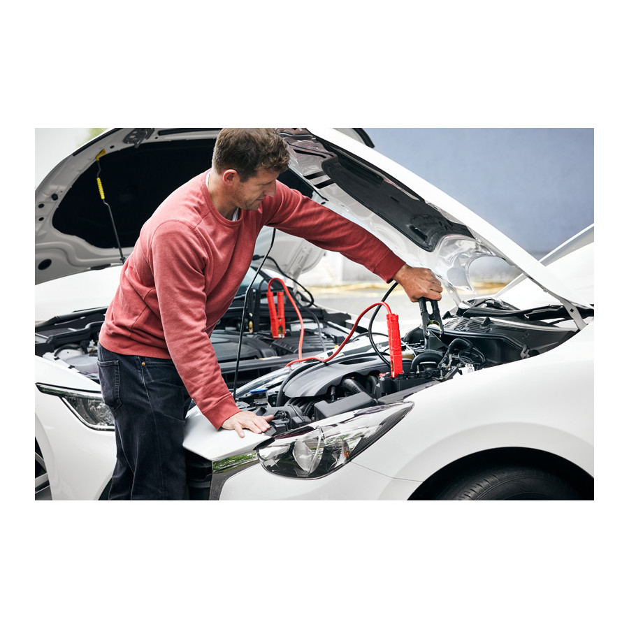 The BATTERYstart STARTER CABLE 700A from OSRAM is a high-quality jumper cable for professional and private use. The cables are made of copper-clad aluminum, which reduces the resistance of the cable and allows a constant and effective transfer of power. The starter cable is 3.5 meters long and has a cross-section of 25mm². Thanks to its length and cross-section, vehicles with petrol and diesel engines up to 5.5 liters can be started, as a peak current of up to 700 A and a direct current of 350 A can be achieved. It is suitable for 12V and 24V.