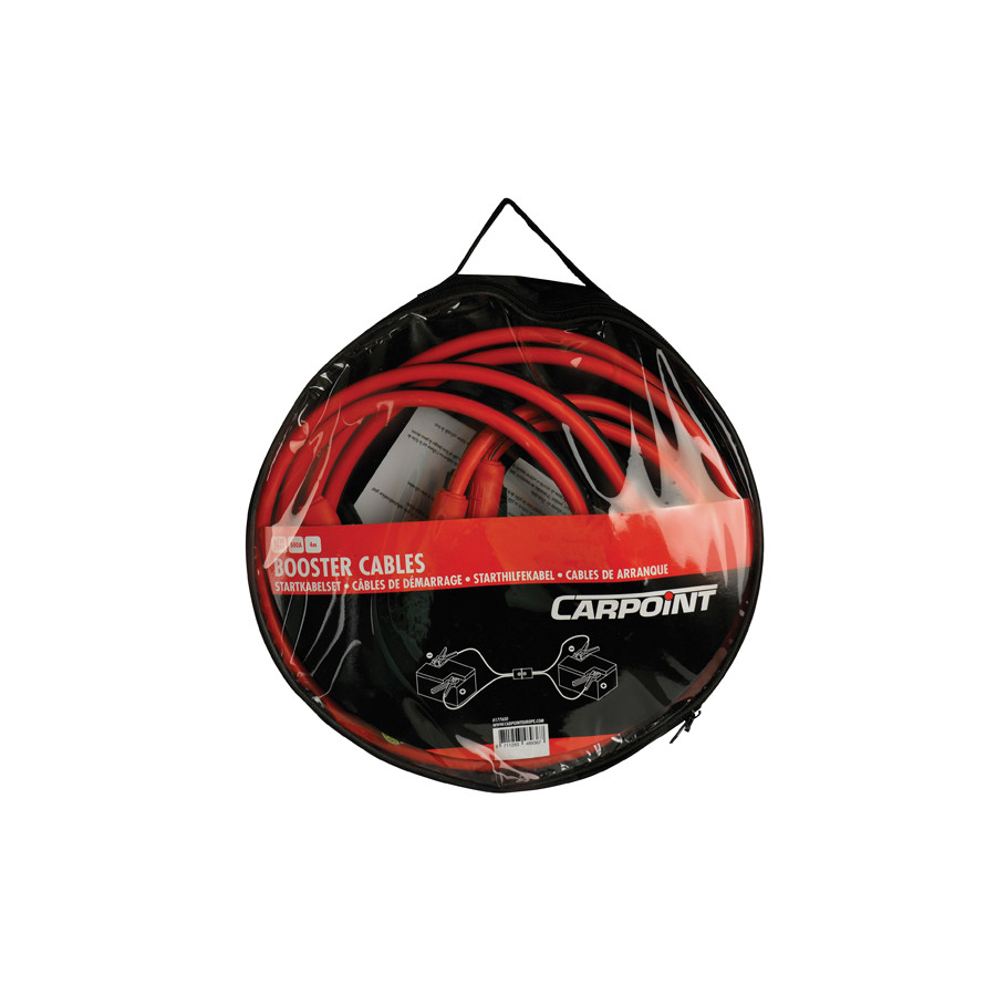 Unique Carpoint jumper cables with a yellow safety plug and polarity indicator. This ensures you always connect the jumper cables to the correct terminals. The jumper cable consists of two parts and is color-coded (red and black), with a yellow safety plug with an LED indicator at each end.