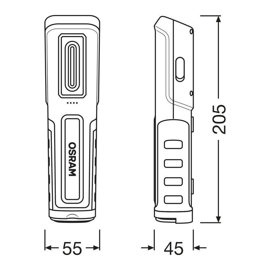 This high-quality inspection lamp from OSRAM is perfect for both professional and private use. With two light functions—main beam with up to 500 lm and flashlight with up to 100 lm—the right light output can be selected depending on the task.
