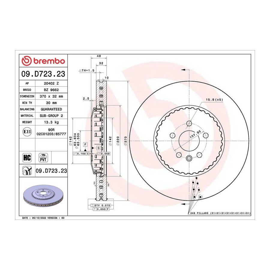 Brembo sport brake discs are cast, finished and tested by Brembo itself, so that exceptional quality can be guaranteed. Every newly produced Brembo brake disc thus has the same exceptional quality as the previous one.