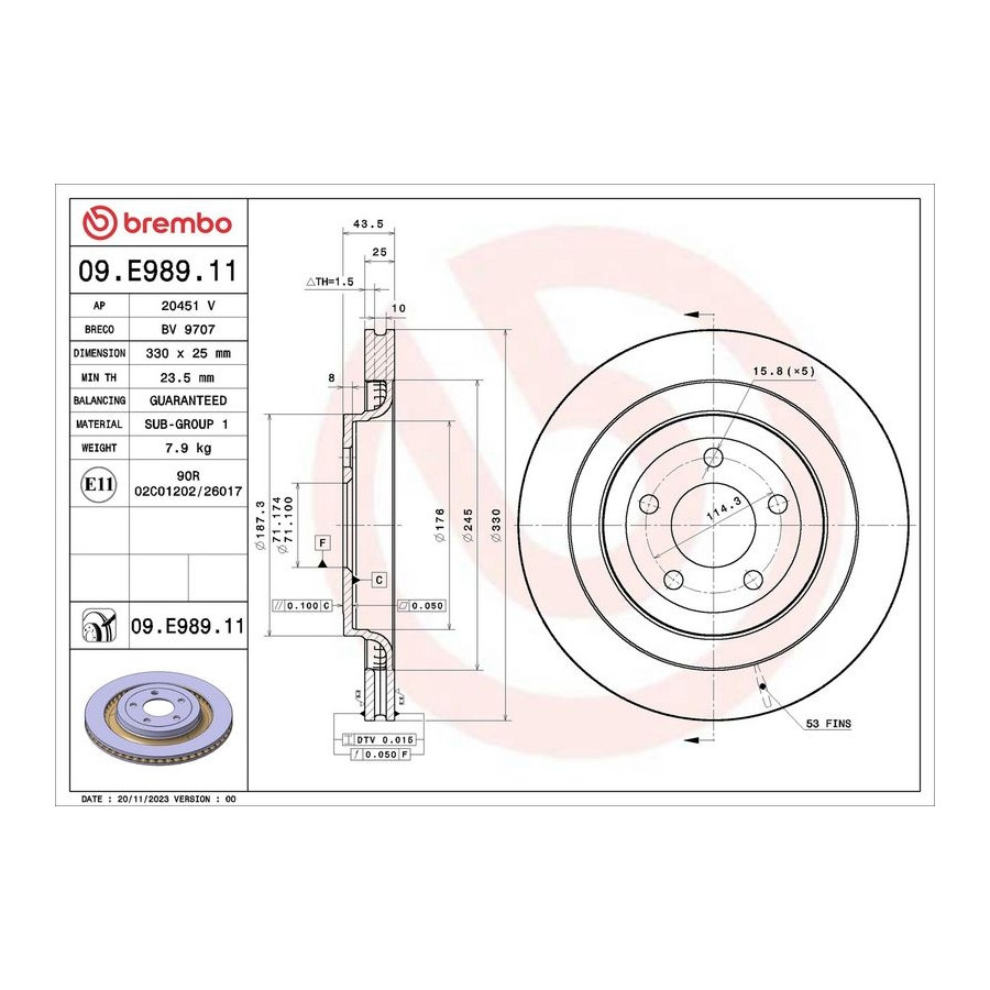 Brake disc 09.E989.11 Brembo