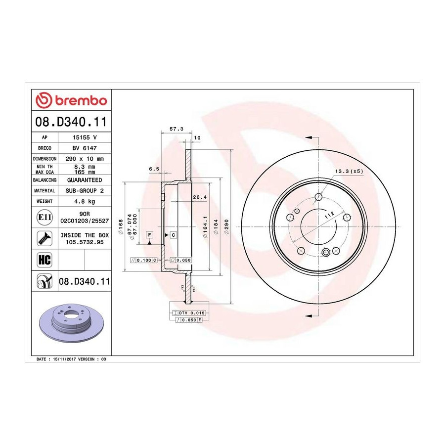 Brake Disc COATED DISC LINE 08.D340.11 Brembo