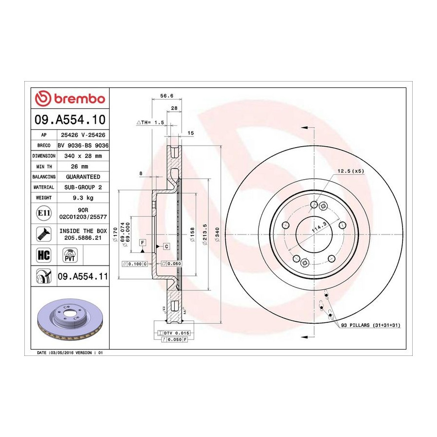 Brake Disc COATED DISC LINE 09.A554.11 Brembo