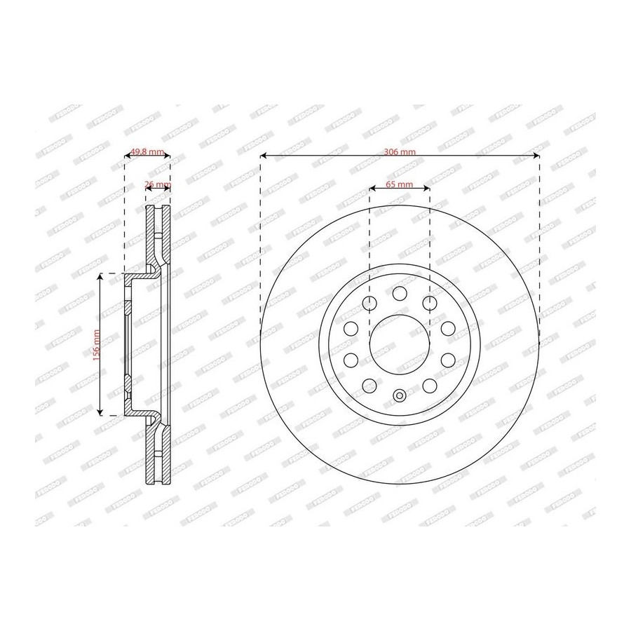 Outer diameter [mm] 306 Brake Disc Type Vented Surface Coated Number of Holes 5 Brake pads Exclusive Bolt Hole Circle Ø [mm] 65 Packing Type Box Centering Diameter [mm] 65 Inspection Tag R90 Homologated Warranty 2 years Height [mm] 50 Brake disc thickness (mm) 26 Minimum thickness (mm) 23 Weight [kg] 17 Similar products of other manufacturers