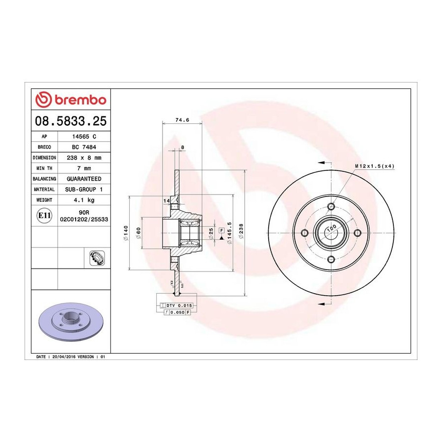 | BREMBO | 08.5833.25 | (this product) |