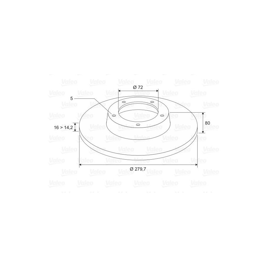 Outer diameter [mm] 280 Fitting Position Rear Axle Rim Hole Number 5 Brake Disc Type Solid Surface No coating Number of mounting bores 5 Brake pads Exclusive Centering Diameter [mm] 72 Inspection Tag ECE-R90 Warranty 2 years Height [mm] 80 Additional information Without ABS sensor ring Without integrated wheel bearing Without screws Brake disc thickness (mm) 16 Minimum thickness (mm) 14,2 Weight [kg] 7,3 Similar products of other manufacturers