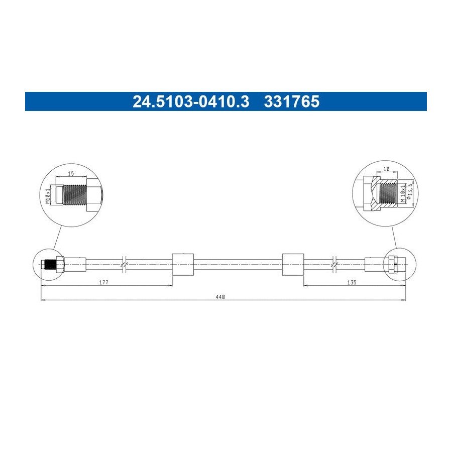 Outer thread [mm] M10x1 Inner thread [mm] M10x1 Warranty 2 years Type Brake hose loose Spanner Size 14 MAPP code available Length [mm] 440 Similar products of other manufacturers