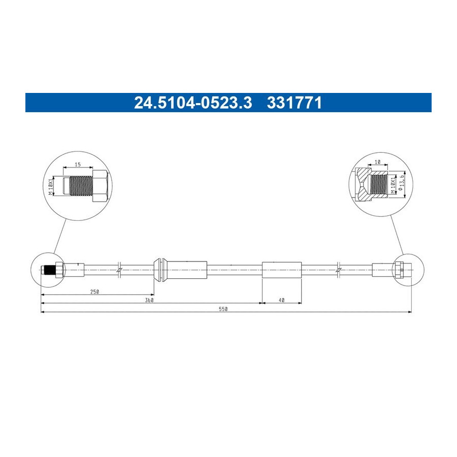 Outer thread [mm] M10x1 Inner thread [mm] M10x1 Warranty 2 years Type Brake hose loose Spanner Size 14 MAPP code available Length [mm] 550 -