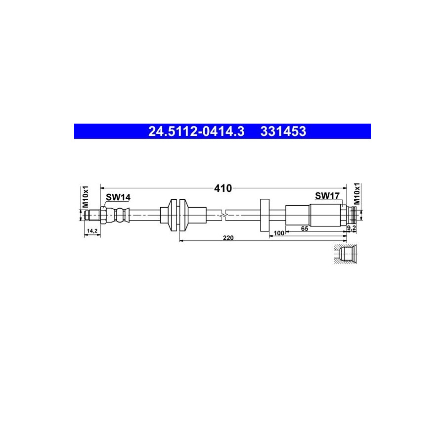 Outer thread [mm] M10x1 Inner thread [mm] M10x1 Warranty 2 years Type Brake hose loose MAPP code available Length [mm] 410 Spanner size 1 [mm] 14 Spanner size 2 [mm] 17 Similar products of other manufacturers
