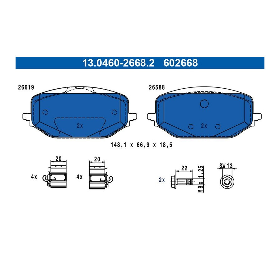 Brake pad set, disc brake 13.0460-2668.2 ATE