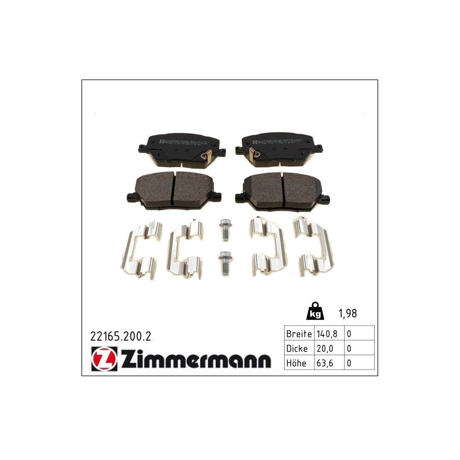 Brake Pad Set, disc brake 22165.200.2 Zimmermann