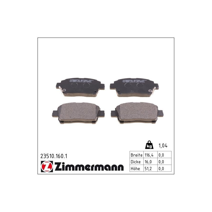 Zimmermann brake pads are specially optimized for your car. This gives you a brake pad set that runs smoothly, provides good braking power, but lasts a long time. The brake pads from Zimmermann are similar to the original brake pads of your car or exceed the specifications.