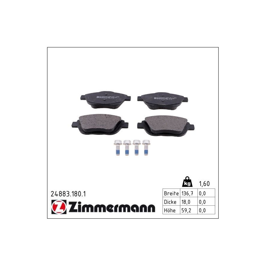 Brake Pad Set, disc brake 24883.180.1 Zimmermann