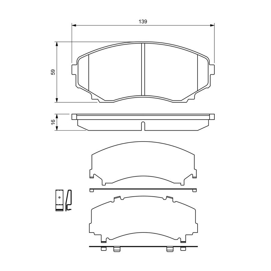 Wear Warning Contact Incl. wear warning contact Content Set (4 brake pads per axle) Assembly Front Material Low-Metallic Supplementary Article/Info 2 With mounting manual Part number of recommended accessories 1 987 474 737 WVA Number 23515 Inspection Tag ECE-R90 Warranty 2 years Height [mm] 59 Width [mm] 139 Thickness [mm] 16 Product must be determined by vehicle or engine Similar products of other manufacturers