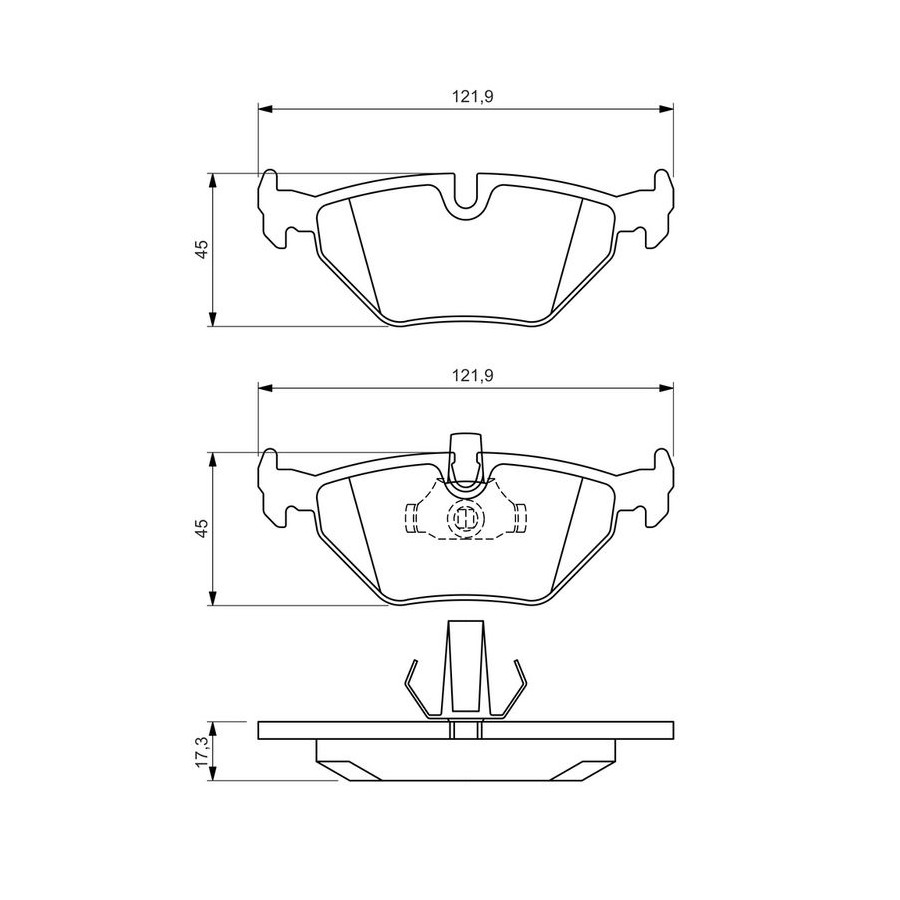 Wear Warning Contact Excl. wear warning contact Content Set (4 brake pads per axle) Assembly Rear Material Low-Metallic Supplementary Article/Info 2 With mounting manual Part number of recommended accessories 1 987 474 268 1 987 474 942 1 987 474 940 WVA Number 21690 Inspection Tag ECE-R90 Warranty 2 years Height [mm] 45 Width [mm] 121,9 Thickness [mm] 17,3 Product must be determined by vehicle or engine Similar products of other manufacturers