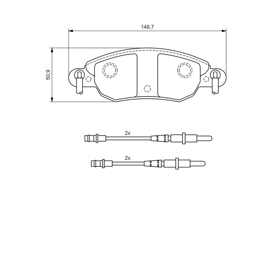 braking System BOSCH Wear Warning Contact Incl. wear warning contact Content Set (4 brake pads per axle) Assembly Front Material Low-Metallic Supplementary Article/Info 2 With anti-squeak plate Part number of recommended accessories 1 987 474 315 WVA Number 23275 Inspection Tag ECE-R90 Warranty 2 years Height [mm] 51 Width [mm] 149,1 Thickness [mm] 17,9 Product must be determined by vehicle or engine Similar products of other manufacturers