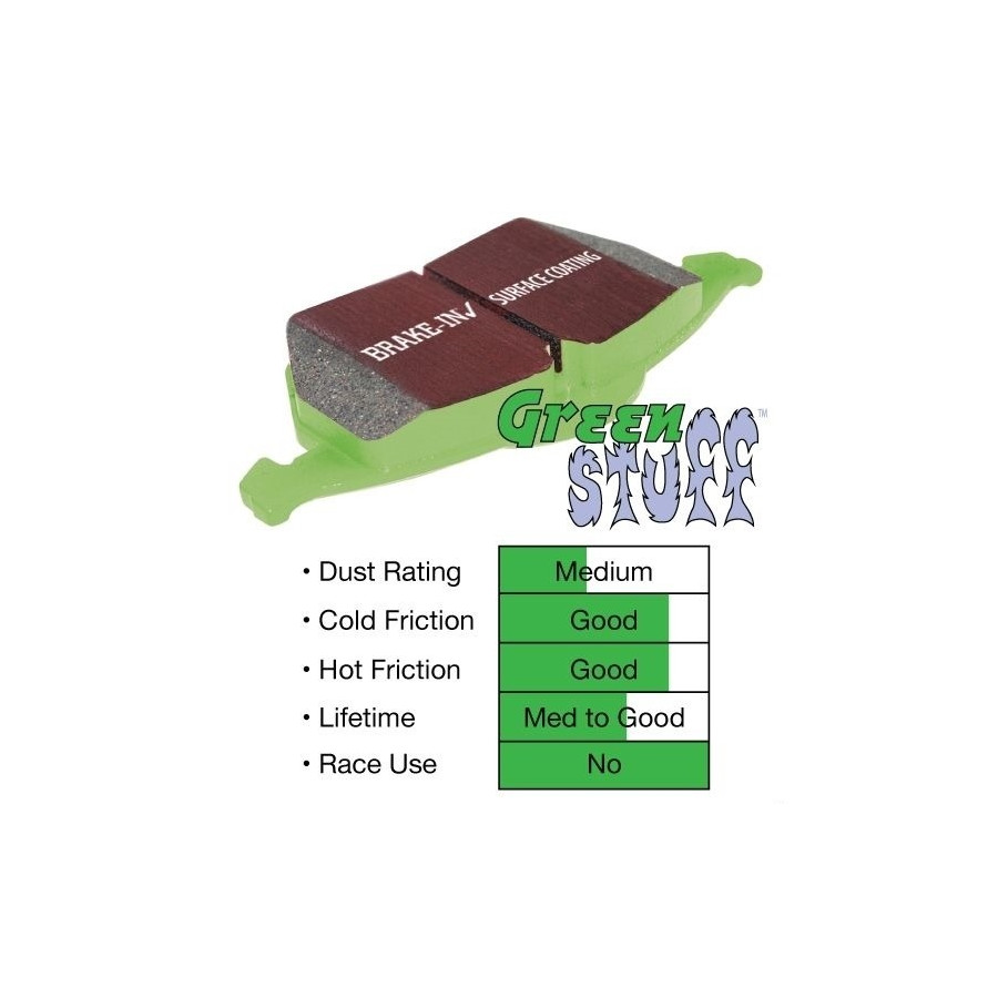 Greenstuff brake pads are suitable for sporty street use of lighter cars. For heavier cars or circuit use, we recommend the Redstuff and Yellowstuff brake pads.