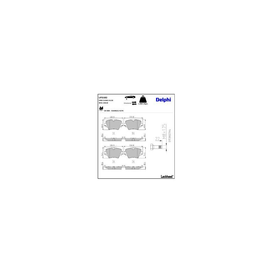 Manufacturer Manufacturer number Price A.B.S. 35074 AISIN BPBM-1025 ASAM 130721 ASHIKA 50-00-0107 ATE 13.0470-2601.2 ATE 13.0460-2601.2 BELACO BPD1142 BELACO BPD2501 BLUE PRINT ADB114220 BORG & BECK BBP2527 BOSCH 0 986 494 940 BRAXIS AA0754 BRECK 25617 00 701 00 BREMBO P 06 093 BREMSI BP3643 BREMSI BP3643CE BSG BSG 15-200-060 Brake ENGINEERING PA2009 CAR PNT5891 CHAMPION 573612CH CIFAM 822-1037-0 COMLINE CBP02319 DELPHI LP3182 (this product) DENCKERMANN B111380 DON PCP1992 Dr!ve+ DP1010.10.1250 EUROBRAKE 5502221567 FAI AutoParts BP206 FAI AutoParts FPBP638 FEBI BILSTEIN 16908 FERODO FDB4689 FREMAX FBP-1532 FTE 9011029 GALFER B1.G120-1573.2 HELLA 8DB 355 023-131 HERTH+BUSS JAKOPARTS J3602132 ICER 182216 JAPANPARTS PA-0107AF JAPKO 500107 JURATEK JCP8052 JURATEK JCP8052HC JURID 573612J KAMOKA JQ101354 KAVO PARTS KBP-10086 KAWE 1625 08 KRAFT AUTOMOTIVE 6012770 Manufacturer Manufacturer number Price LORO 231-01-334 LPR 05P1985 LYNXauto BD-1448 MAGNETI MARELLI 363916060916 MAGNETI MARELLI 363700406093 MAPCO 6014HPS MAPCO 6014 MASTER-SPORT 13046026012T-SET-MS MASTER-SPORT 13046026012N-SET-MSP MASTER-SPORT 13046026012N-SET-MS MAXGEAR 19-3593 METELLI 22-1037-0 METZGER 1170845 MEYLE 025 256 1718/PD MEYLE 025 256 1718 MINTEX MDB3757 MOTAQUIP LVXL1835 NATIONAL NP2833 NK 221567 NPS B360W03 OPEN PARTS BPA1625.08 OPTIMAL BP-12674 PAGID T2434N PAGID T4227N QUARO QP5668 QUARO QP5668C QUINTON HAZELL BP1859 R BRAKE RB2216 REMSA 1625.08 ROADHOUSE 21625.08 ROTINGER RT 2PD31820 SASIC 6210106 SKF VKBP 80132 STELLOX 689 002-SX SWAG 20 91 6908 TEXTAR 2561705 TEXTAR 2561701 TRUCKTEC AUTOMOTIVE 08.35.203 TRUSTING 1061.0 VAICO V20-3127 VALEO 302554 VALEO 601470 VALEO 610417 VALEO 302554A WOKING P17253.08 fri.tech. 1061.0 -