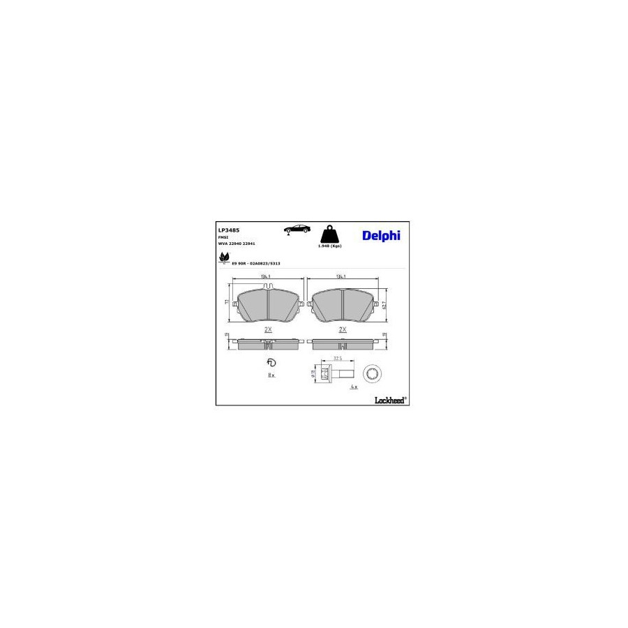 Brake Pad Set, disc brake LP3485 Delphi