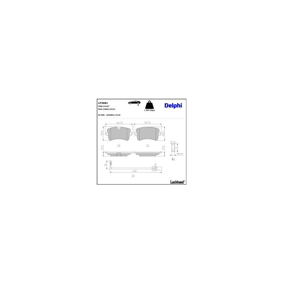 Brake Pad Set, disc brake LP3681 Delphi