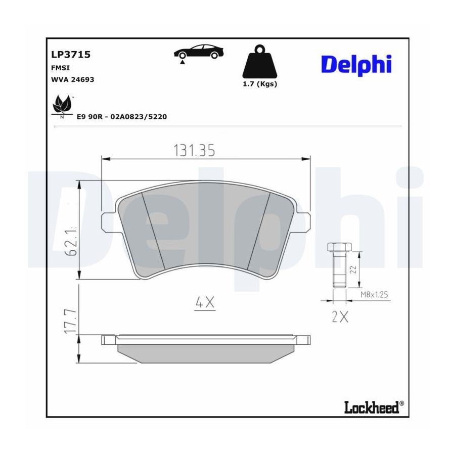 Brake Pad Set, disc brake LP3715 Delphi