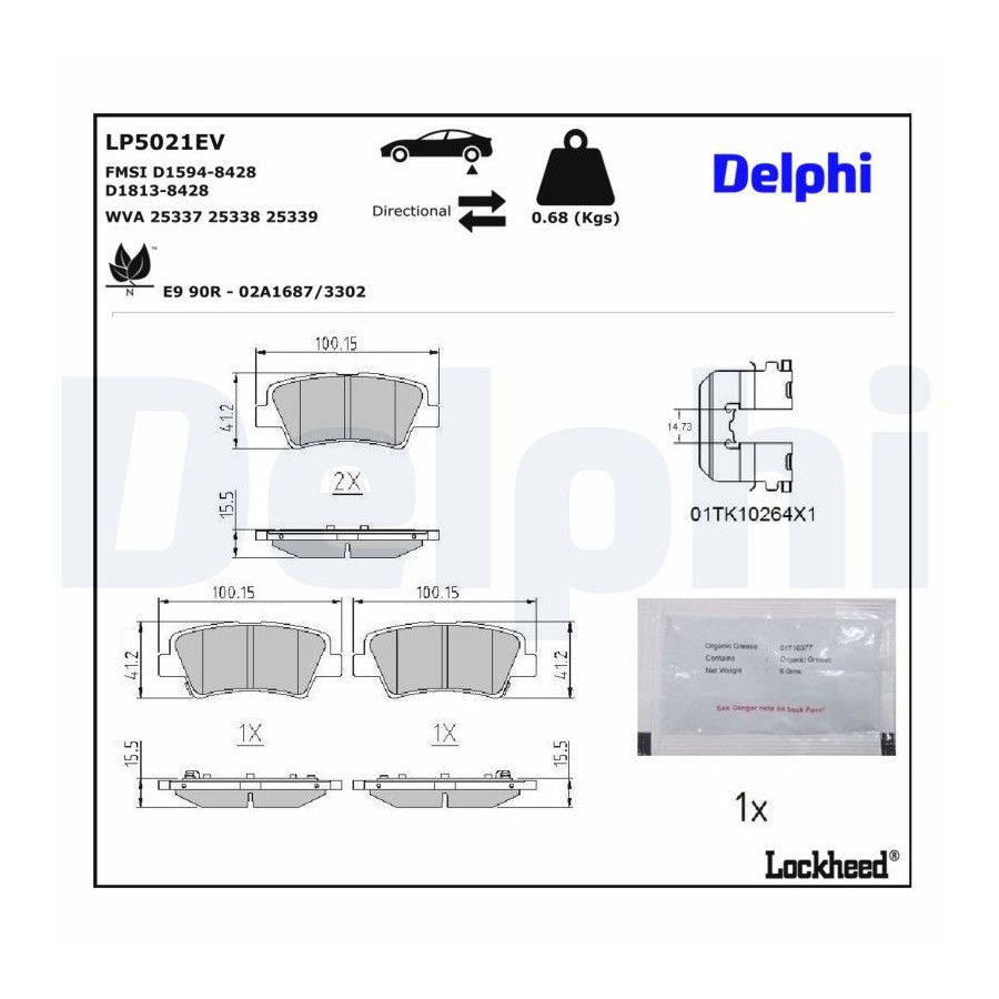 Brake pad set, disc brake LP5021EV Delphi