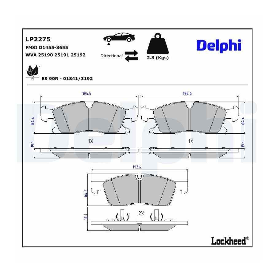 JEU DE PLAQUETTES DE FREIN LP2275 Delphi