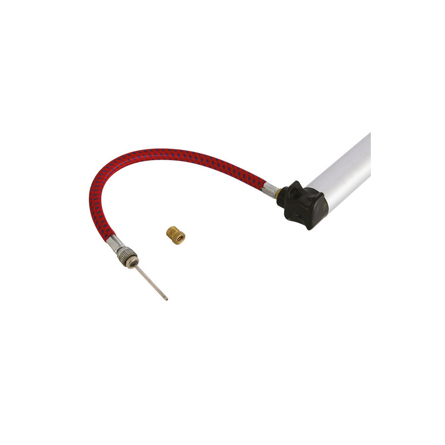 The Dresco pump hose can easily be connected to any frame pump, allowing you to inflate different types of tires. This 20 centimeter long pump stroke with extra adapter nipple is therefore suitable for tires with Presta, Schrader, Dunlop and Blitz valves. The needle adapter makes it possible to inflate footballs.