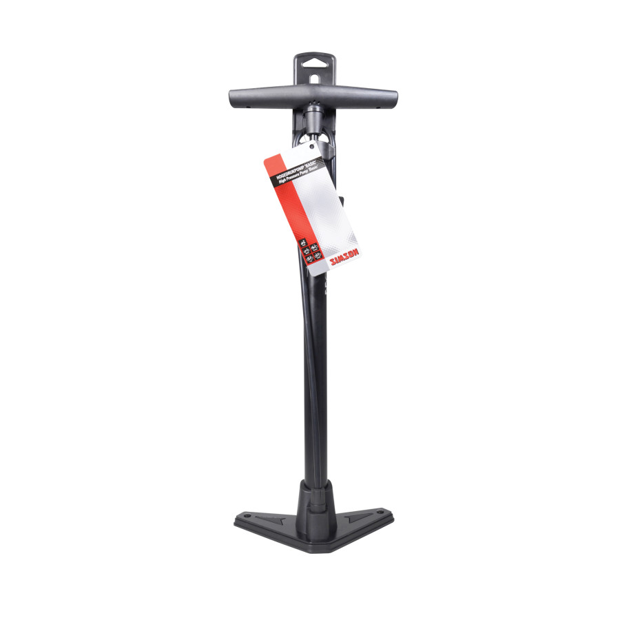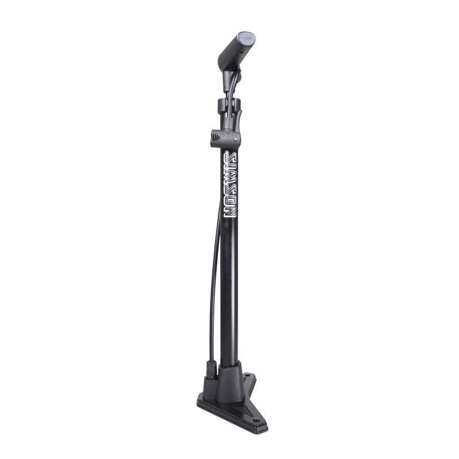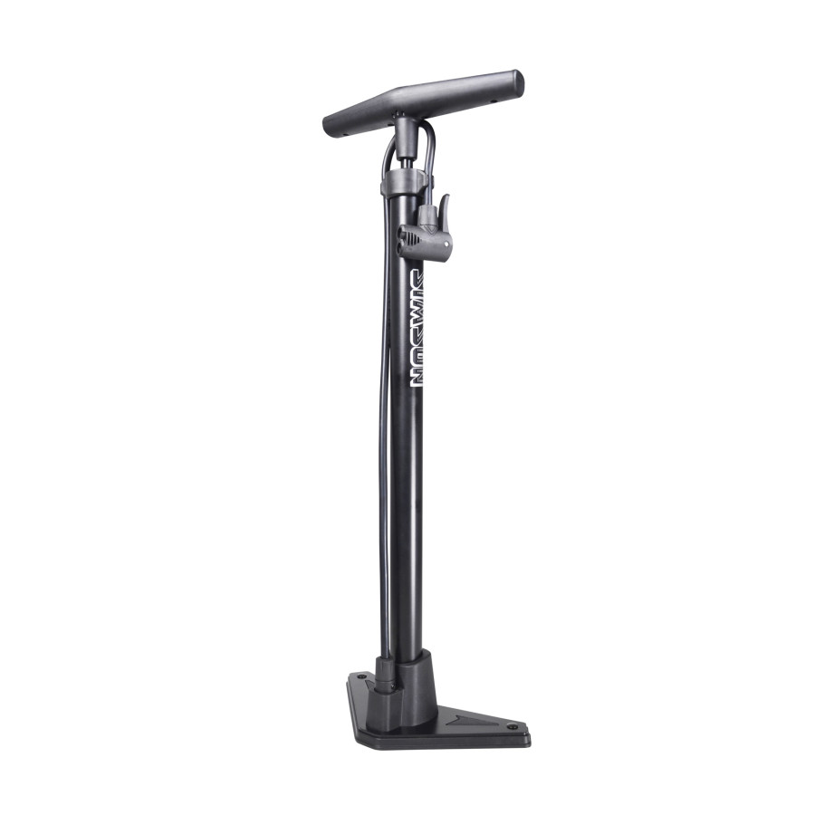 The Simson high-pressure pump Basic is a robust black bicycle pump with a pumping range of 8 bar / 116 PSI. The pump has a steel pump tube and a steel pump foot with an attractive plastic finish. The ergonomic plastic handle ensures a comfortable grip when pumping. The bicycle pump is equipped with a double pump head with which all types of bicycle valves can be easily inflated without the aid of adapters.