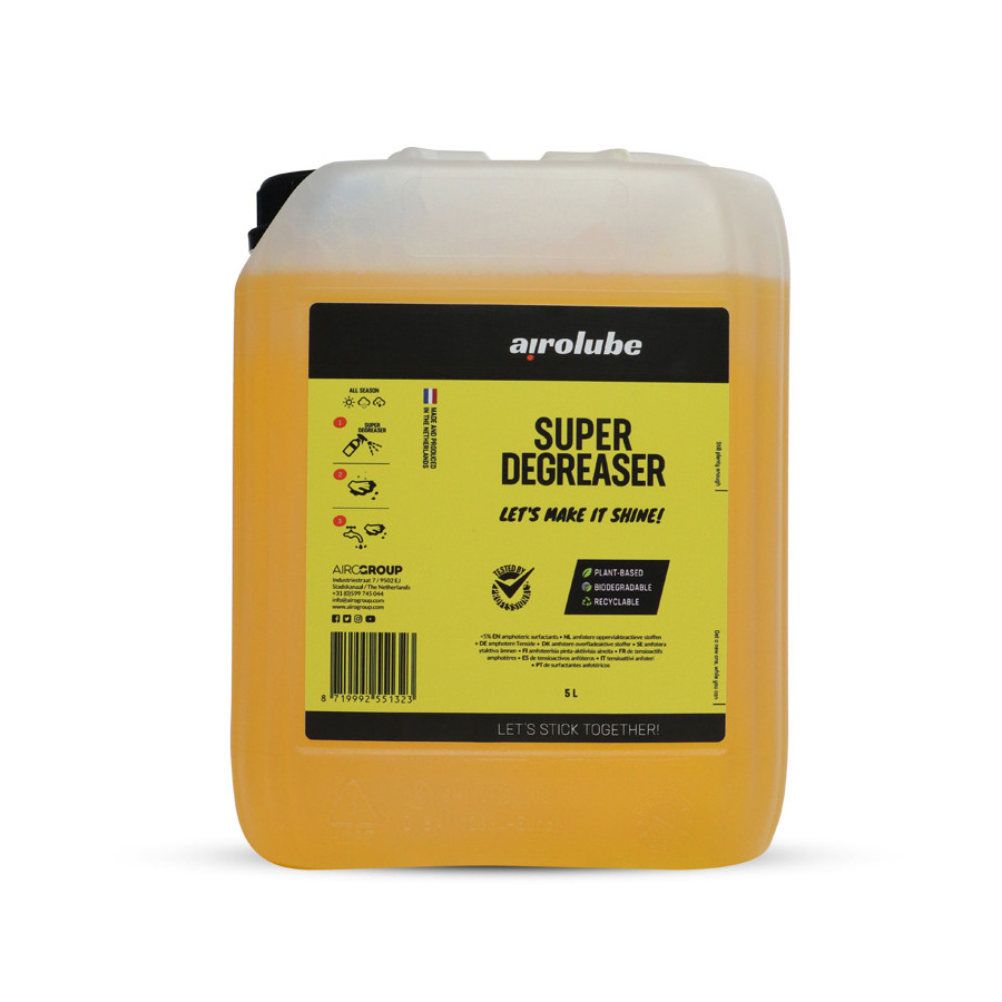 Airolube Super Degrease r: is a functional degreaser for degreasing the drivetrain of the bicycle and lightly soiled car, motorcycle and agricultural parts.