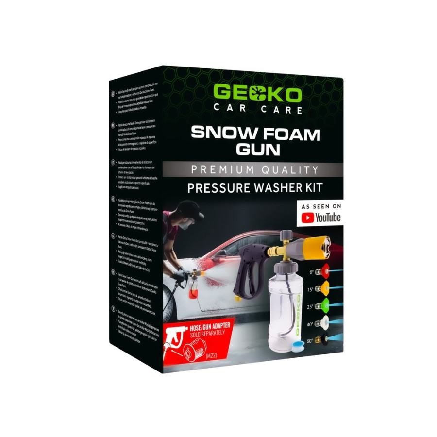 Take your car cleaning to the next level with the Gecko Snow Foam Gun, which preserves the protective wax layer. This specially designed snow foam gun is perfect for cars with coated, waxed, or sealed paintwork. The Gecko Snow Foam Gun works seamlessly with Gecko Snow Foam, whose active foam adheres to the paintwork and gently loosens dirt. Even lightly soiled cars can be thoroughly cleaned with a pressure washer thanks to this effective combination.