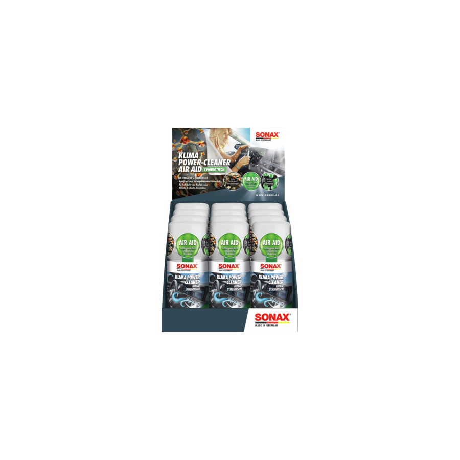 SONAX Clima PowerCleaner AirAid symbiotic quickly & easily ensures long-lasting air hygiene and frees you from unpleasant odours. The innovative formula cleans the air conditioning system, ventilation systems and evaporator and leaves a fresh scent in the car interior.