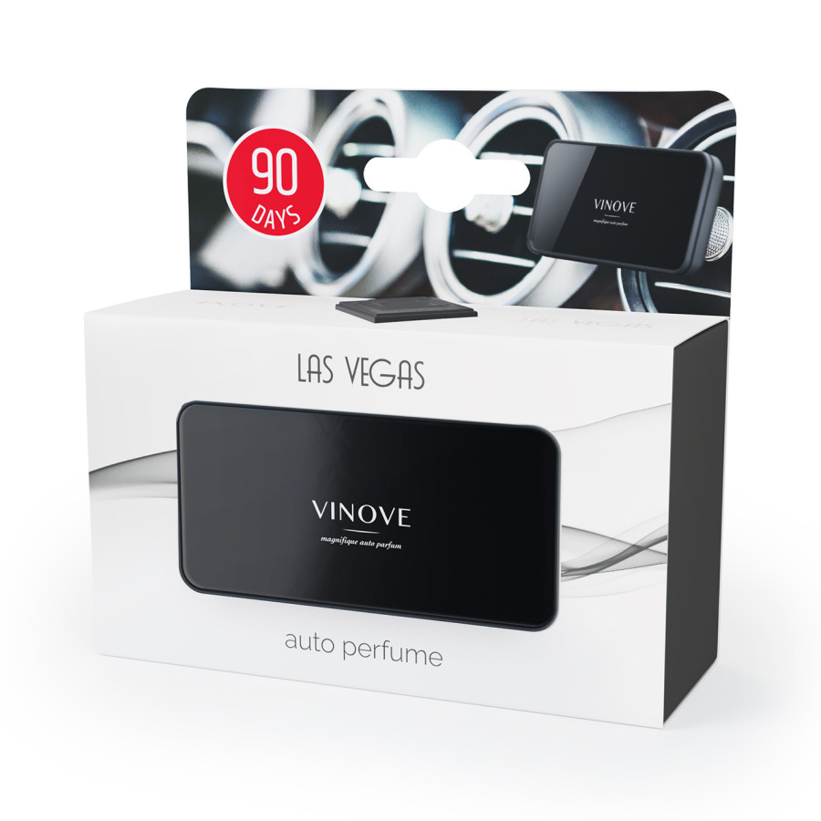 The Vinove Original Las Vegas air freshener features an exclusive design, an amber-infused scent of bergamot and pepper with notes of violet and rose. The air freshener can be attached horizontally or vertically to the ventilation grille using the clip.