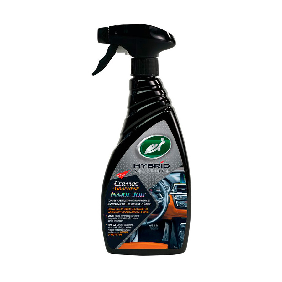 Turtle Wax Hybrid Solutions Inside Job is the ultimate all-in-one cleaner and conditioner with superior UV protection. Turtle Wax Inside Job delivers incredible cleaning power through natural enzymes and durable protection thanks to the addition of Ceramic & Graphene. Inside Job is pH-neutral and has a fragrance blend of aloe vera and neatsfoot oil.