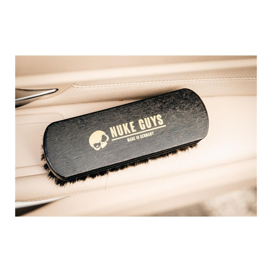 The Nuke Guys Horse Hair Brush is a versatile brush. It is suitable for cleaning convertible tops, upholstered seats, carpets, floor mats, Alcantara seats or roof linings and other sensitive fabrics.