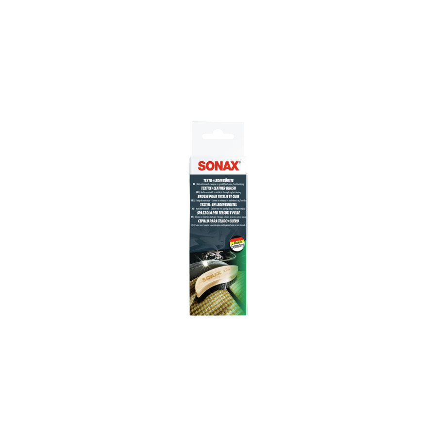 Ergonomic cleaning brush for wet and dry cleaning of textiles and for thorough and conscious cleaning of smooth leather surfaces. Ideal for use in combination with the special SONAX upholstery/textile and leather care products.